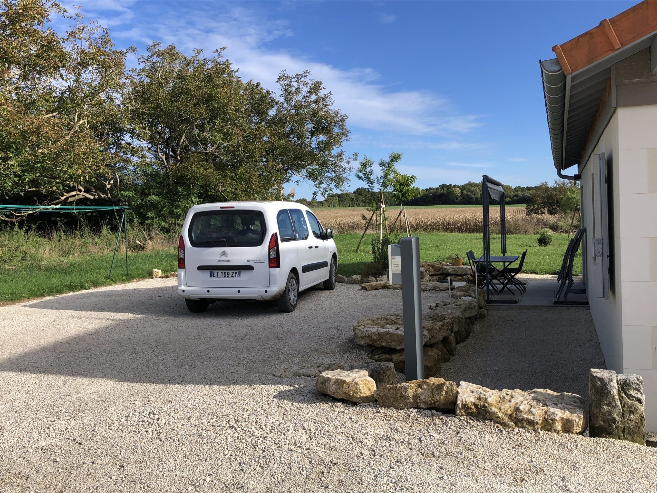 Parking privé avec borne de recharge pour véhicule électrique. Type Terra ACW22 avec relevé de compteur payant. Arrivée à partir de 16h et départ jusqu’à 10h.