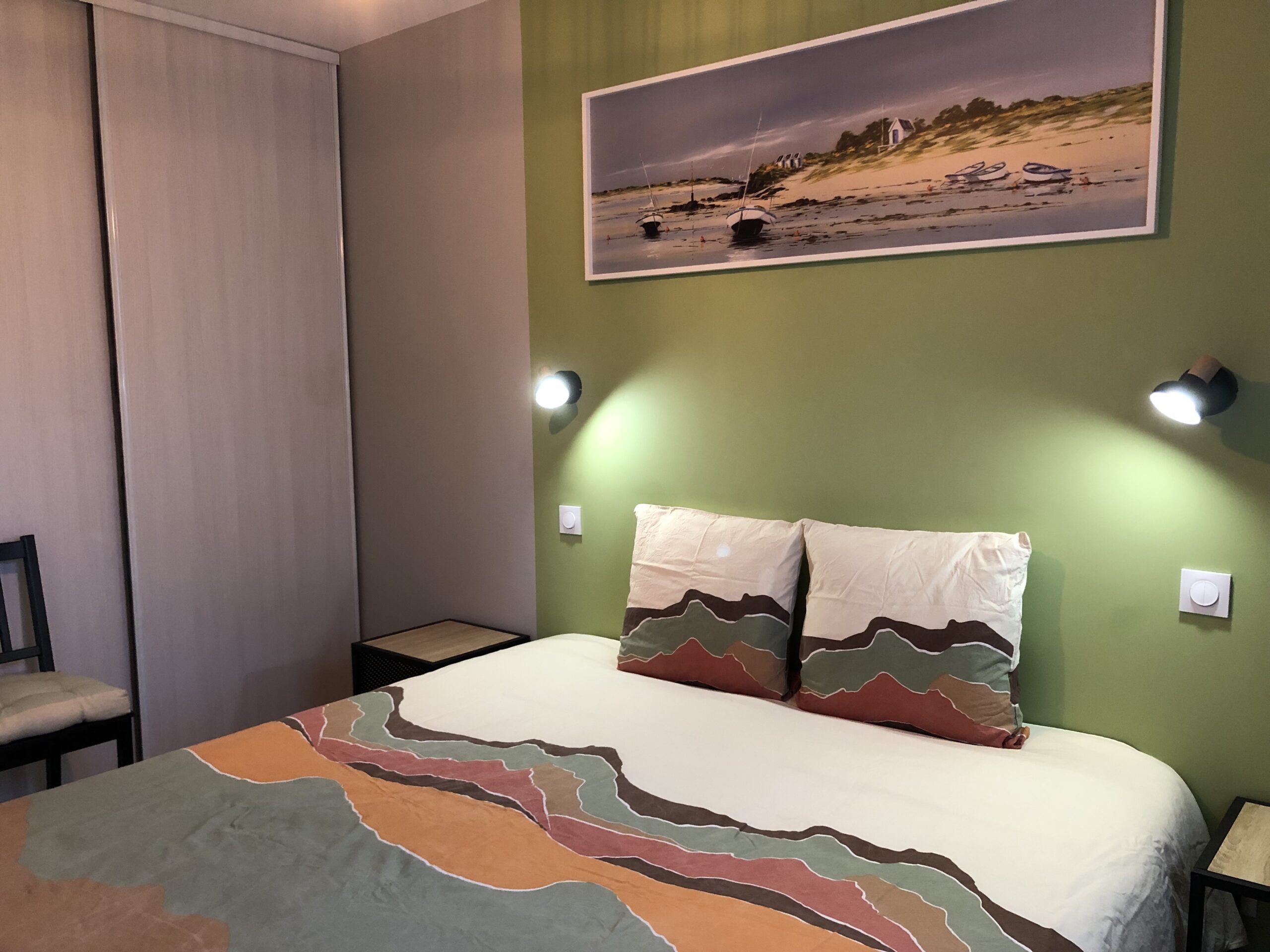 Chambre 12.15m² : lit 180×200 ou 2 lits 90×200 de grande qualité, linge de lit fourni, il est fait à votre arrivée.